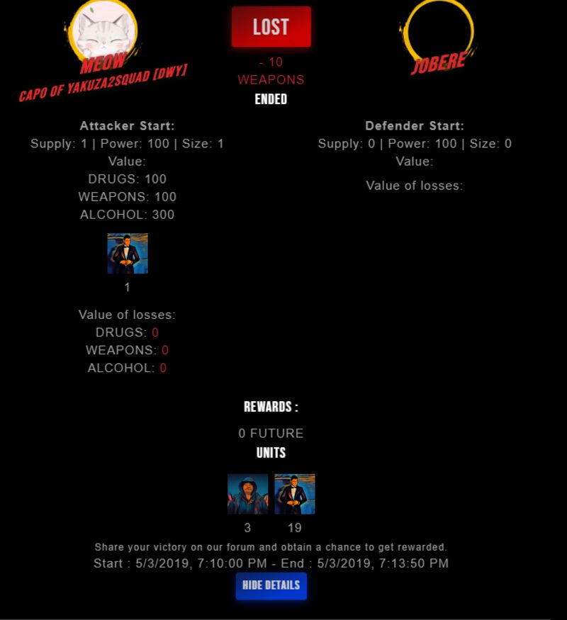 Congratulations @jobere ! Your fight received an upvote of 28% from the Dealer as incentive for your activity and as a gratitude for your support to the game.