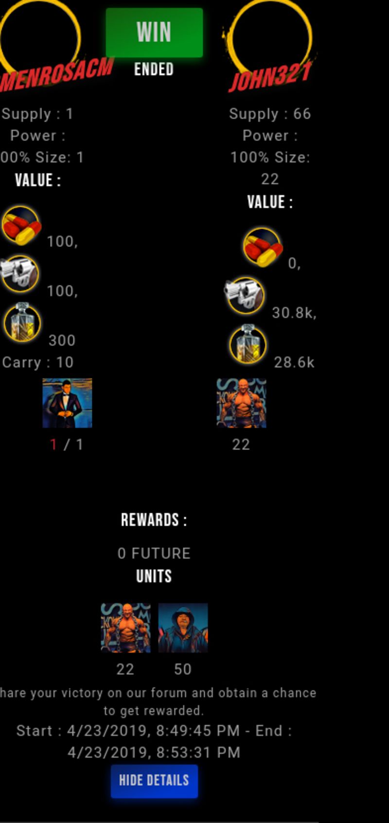 Check my latest fight ! carmenrosacm vs john321john321 (43)in #drugwars-fight • 7 years ago #gaming #fight #dw
