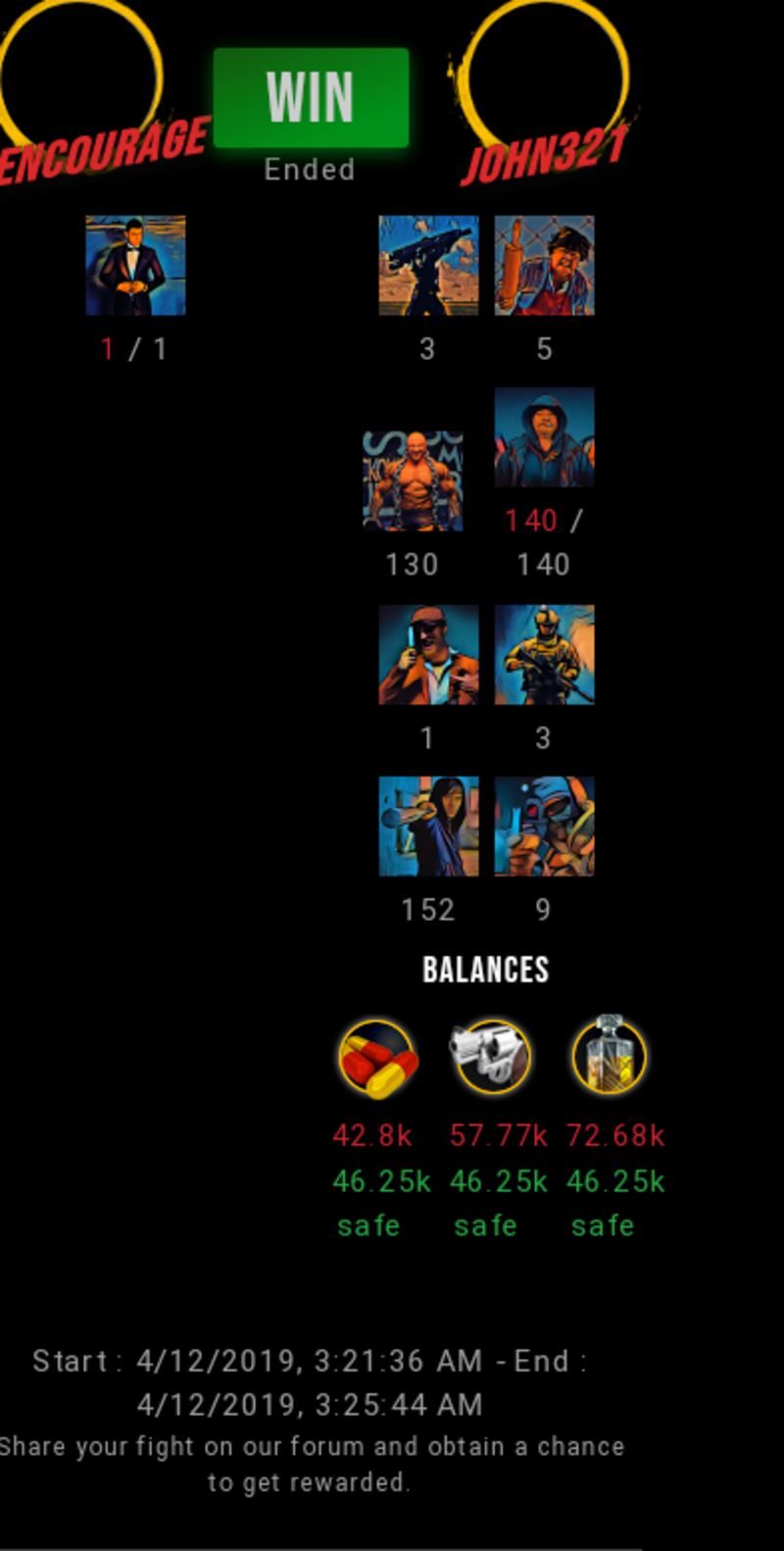 Check my latest fight ! edencourage vs john321john321 (43)in #drugwars-fight • 7 years ago #gaming #fight #dw