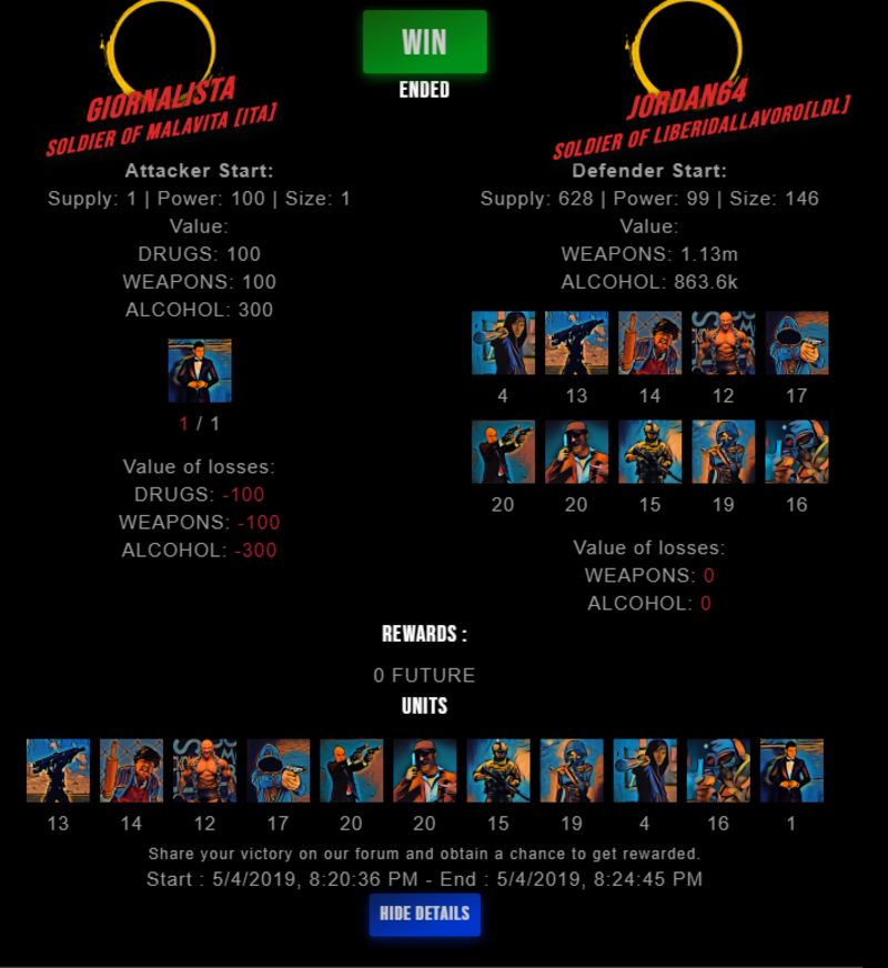 Congratulations @jordan64 ! Your fight received an upvote of 1.8% from the King Dealer as incentive for your activity and as a gratitude for your support to the game.