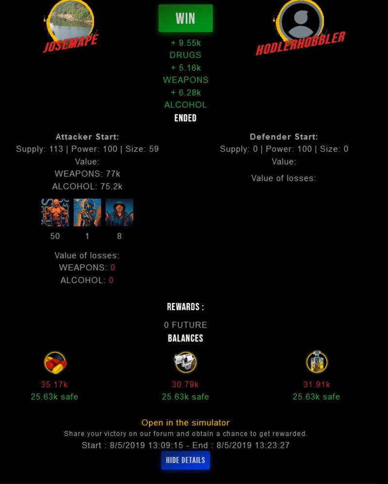 Check my latest fight ! josemape vs hodlerhobblerjosemape (56)in #drugwars-fight • 7 years ago #gaming #fight #dw