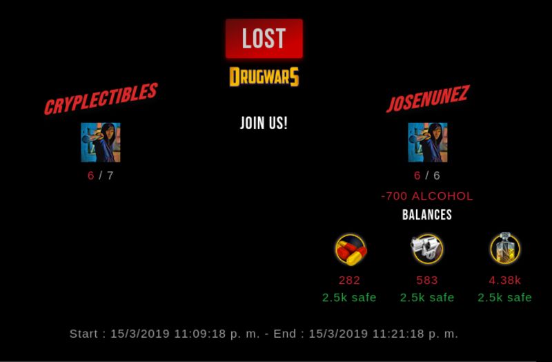 Check my latest fight ! cryplectibles vs josenunezjosenunez (14)in #drugwars-fight • 7 years ago #gaming #fight #dw