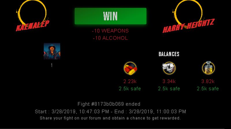 Check my latest fight ! kaenalep vs harry-heightzkaenalep (25)in #drugwars-fight • 7 years ago #gaming #fight #dw