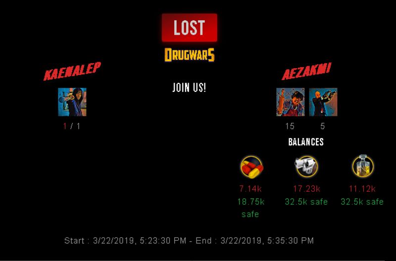 Check my latest fight ! kaenalep vs aezakmikaenalep (25)in #drugwars-fight • 7 years ago #gaming #fight #dw
