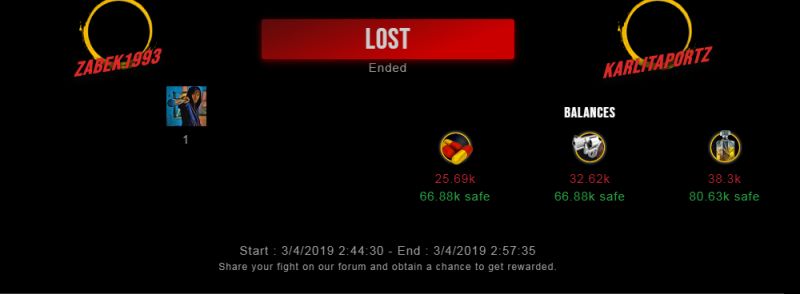 Check my latest fight ! zabek1993 vs karlitaportzkarlitaportz (53)in #drugwars-fight • 7 years ago #gaming #fight #dw