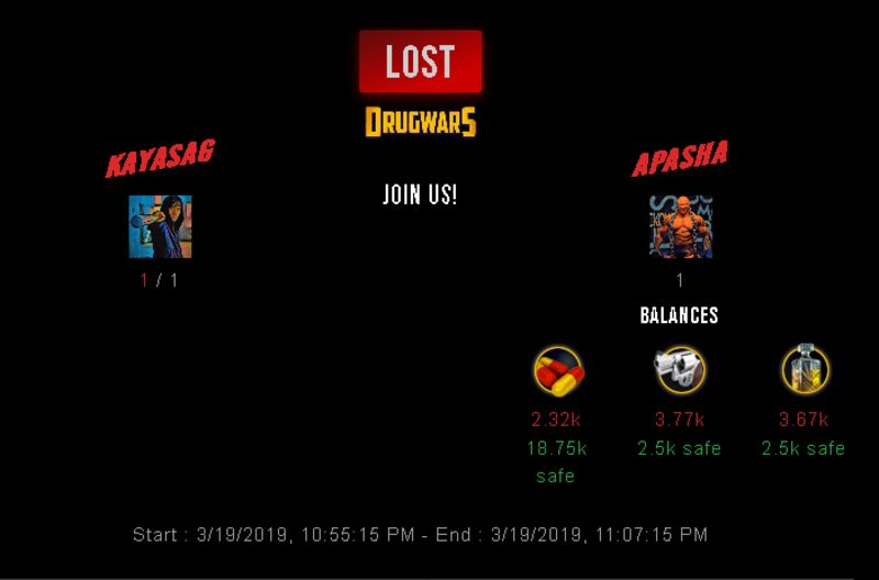 Check my latest fight ! kayasag vs apashakayasag (28)in #drugwars-fight • 7 years ago #gaming #fight #dw