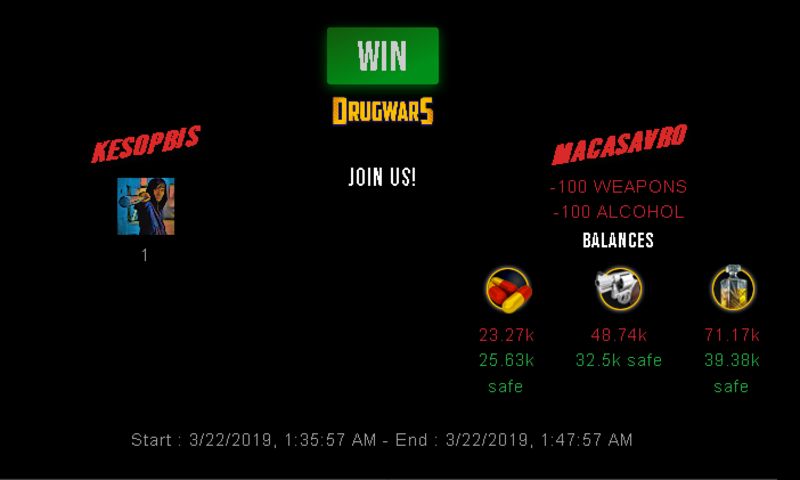 Check my latest fight ! kesopbis vs macasavrokesopbis (29)in #drugwars-fight • 7 years ago #gaming #fight #dw