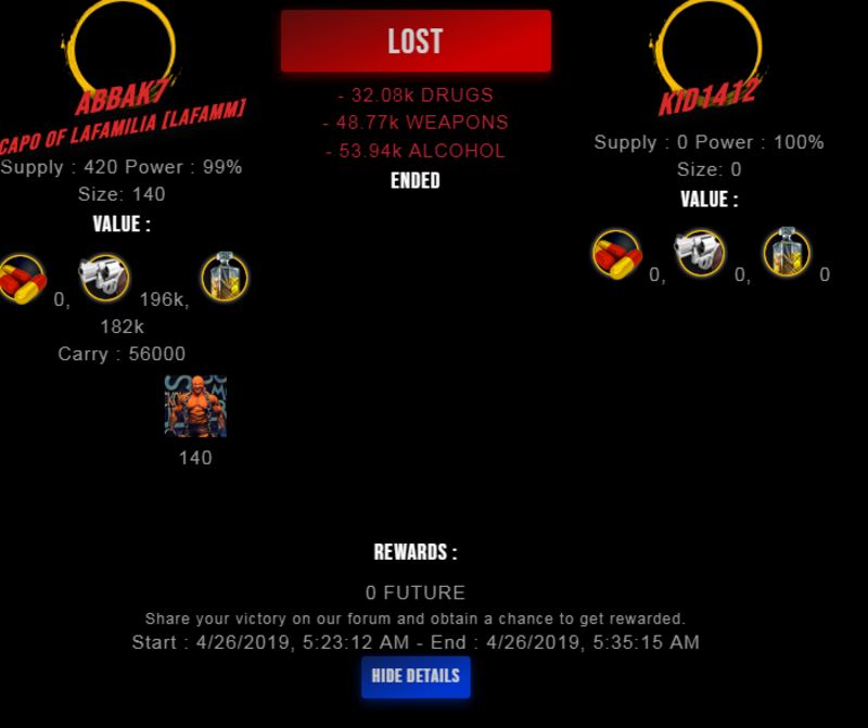 Check my latest fight ! abbak7 vs kid1412kid1412 (49)in #drugwars-fight • 7 years ago #gaming #fight #dw
