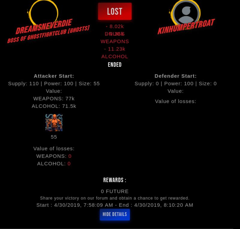 Congratulations @kinhumpertroat ! Your fight received an upvote of 5% from the Dealer as incentive for your activity and as a gratitude for your support to the game.