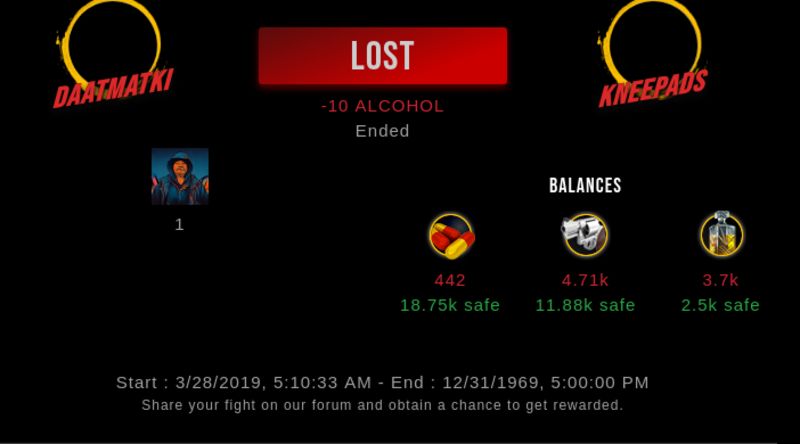 Check my latest fight ! daatmatki vs kneepadskneepads (25)in #drugwars-fight • 7 years ago #gaming #fight #dw