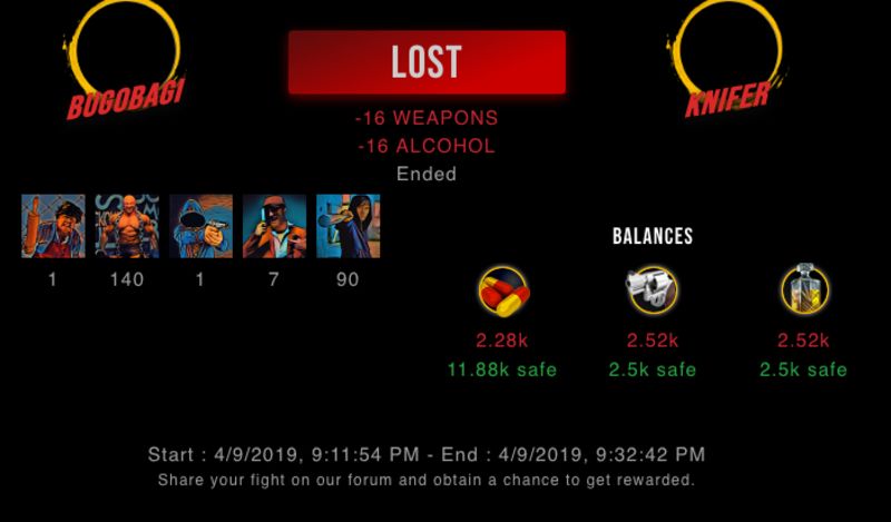Check my latest fight ! bugobagi vs kniferknifer (50)in #drugwars-fight • 7 years ago #gaming #fight #dw