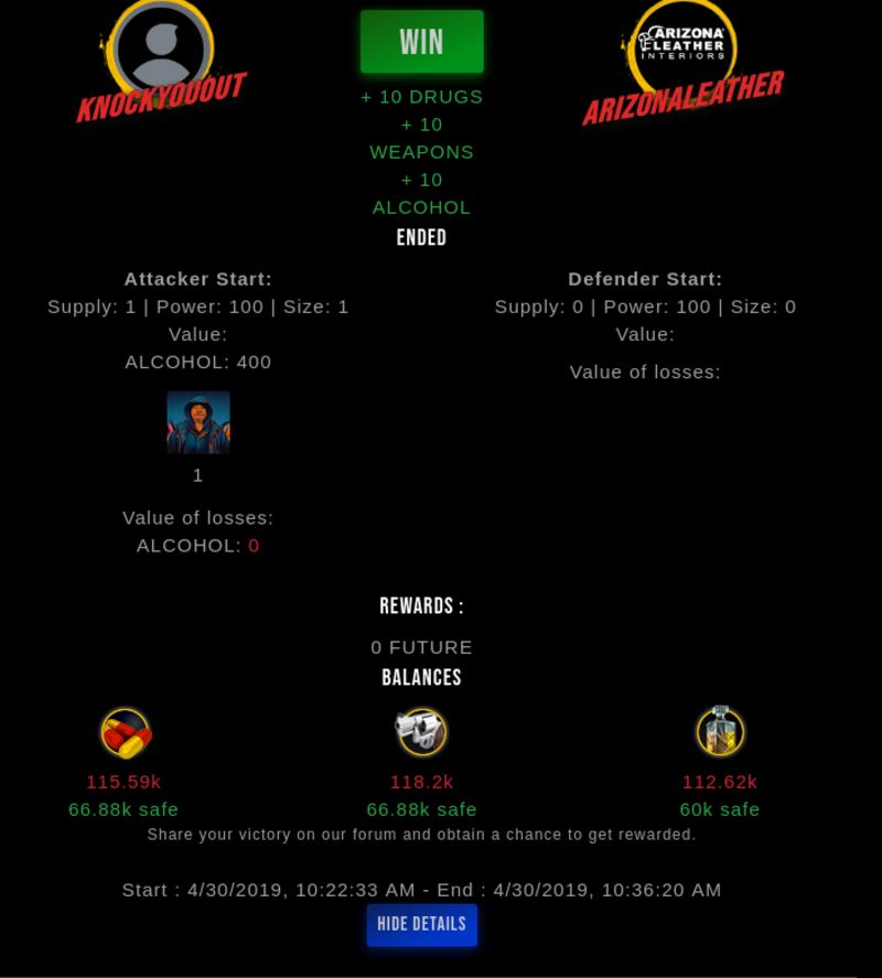 Check my latest fight ! knockyouout vs arizonaleatherknockyouout (25)in #drugwars-fight • 7 years ago #gaming #fight #dw