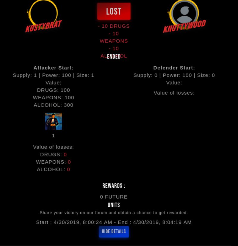Check my latest fight ! kostybrat vs knottywoodknottywood (25)in #drugwars-fight • 7 years ago #gaming #fight #dw