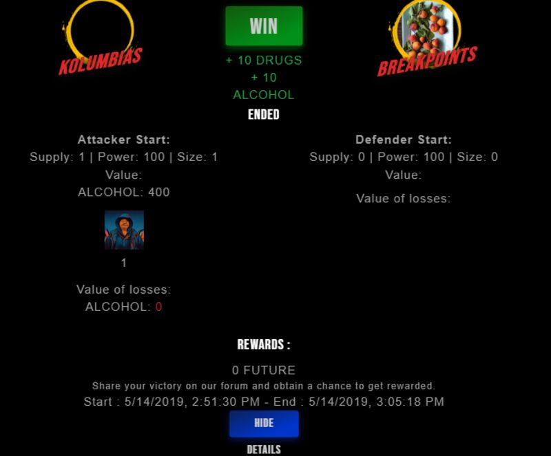 Check my latest fight ! kolumbias vs breakpointskolumbias (46)in #drugwars-fight • 7 years ago #gaming #fight #dw