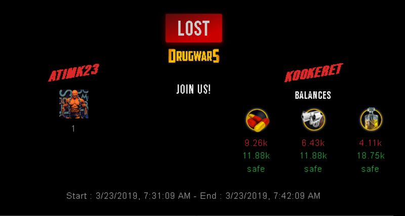 Check my latest fight ! atimk23 vs kookeretkookeret (25)in #drugwars-fight • 7 years ago #gaming #fight #dw