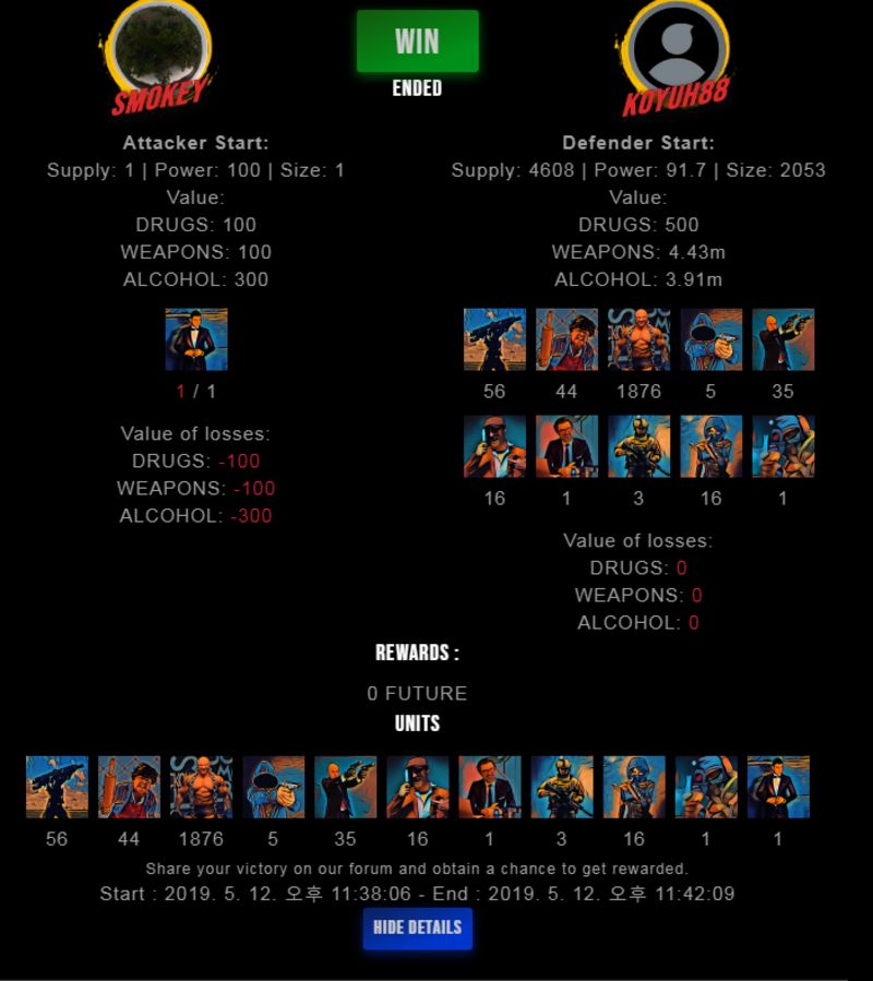 Check my latest fight ! smokey vs koyuh88koyuh88 (49)in #drugwars-fight • 7 years ago #gaming #fight #dw