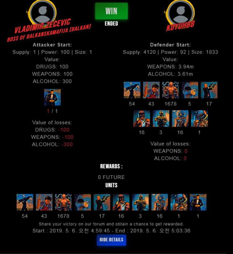 Congratulations @koyuh88 ! Your fight received an upvote of 18% from the Dealer as incentive for your activity and as a gratitude for your support to the game.