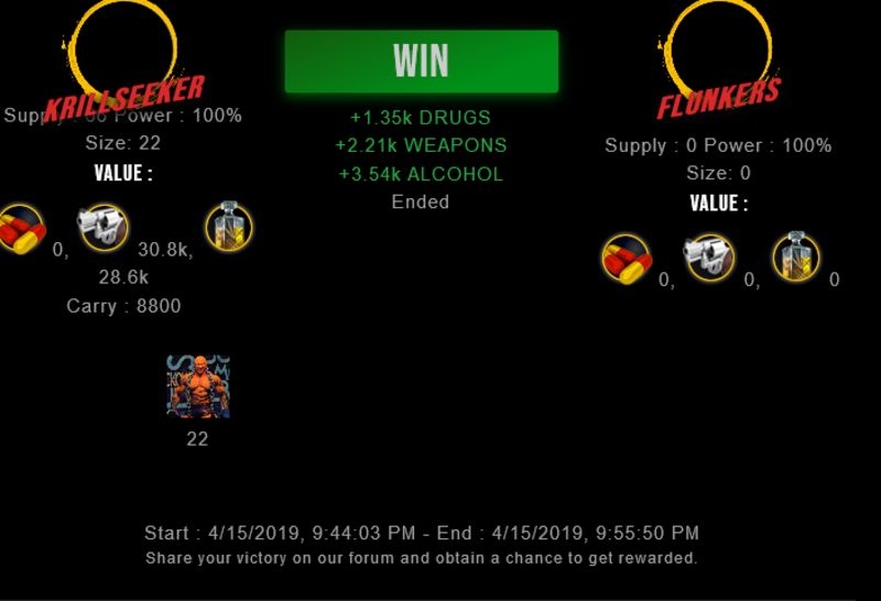 Check my latest fight ! undefined vs flunkerskrillseeker (38)in #drugwars-fight • 7 years ago #gaming #fight #dw