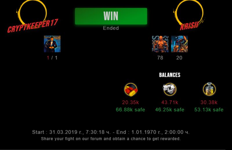 Congratulations @krisii ! Your fight received an upvote of 1% from the King Dealer as incentive for your activity and as a gratitude for your support to the game.