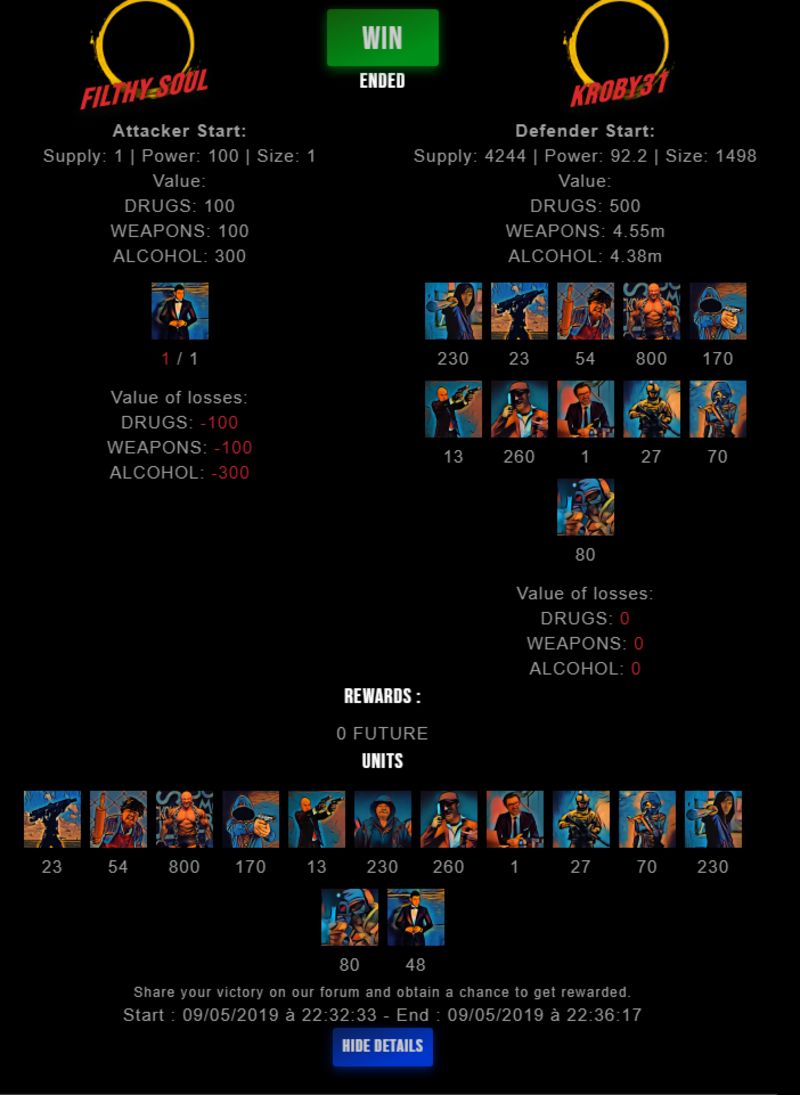 Check my latest fight ! filthy soul vs kroby31kroby31 (60)in #drugwars-fight • 7 years ago #gaming #fight #dw