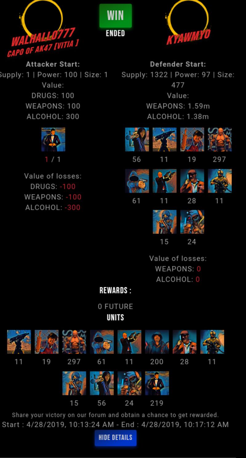 Congratulations @kyawmyo ! Your fight received an upvote of 10% from the Dealer as incentive for your activity and as a gratitude for your support to the game.