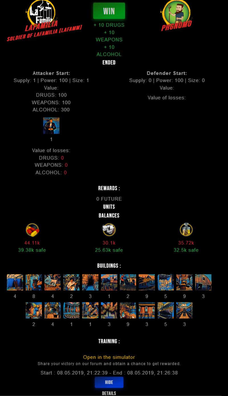 Congratulations @lafamilia ! Your fight received an upvote of 2.9% from the King Dealer as incentive for your activity and as a gratitude for your support to the game.