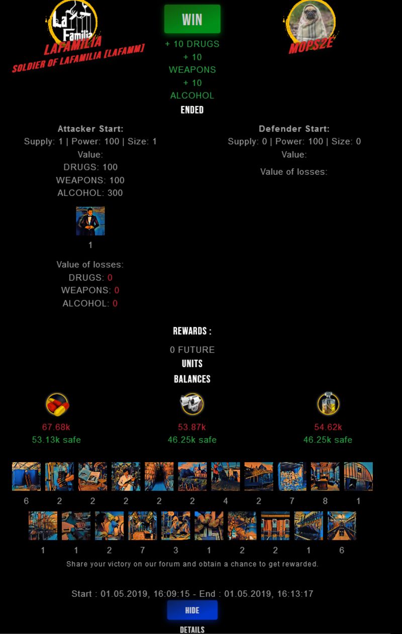 Check my latest fight ! lafamilia vs mops2elafamilia (61)in #drugwars-fight • 7 years ago #gaming #fight #dw