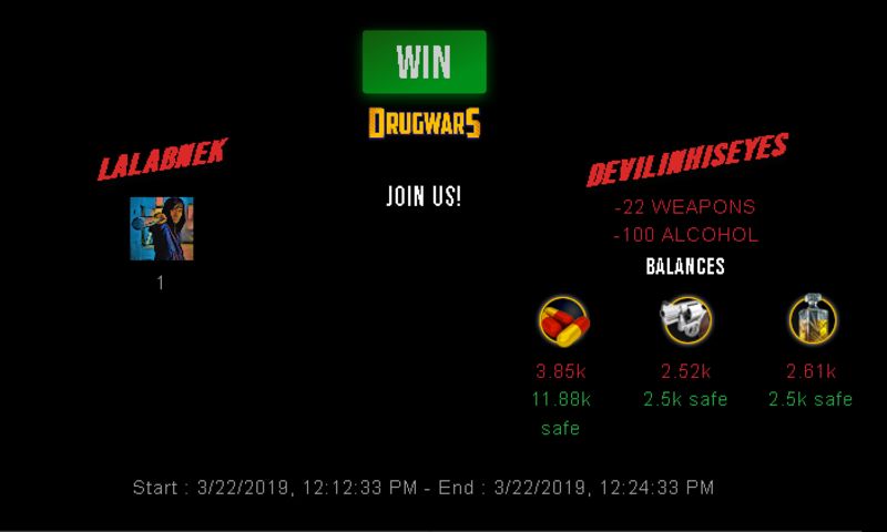 Check my latest fight ! lalabnek vs devilinhiseyeslalabnek (25)in #drugwars-fight • 7 years ago #gaming #fight #dw