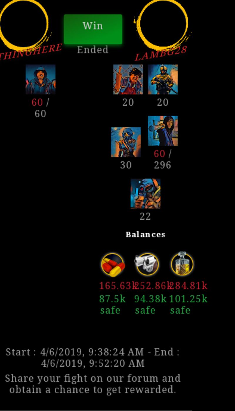 Congratulations @lambg28 ! Your fight received an upvote of 1.1% from the King Dealer as incentive for your activity and as a gratitude for your support to the game.