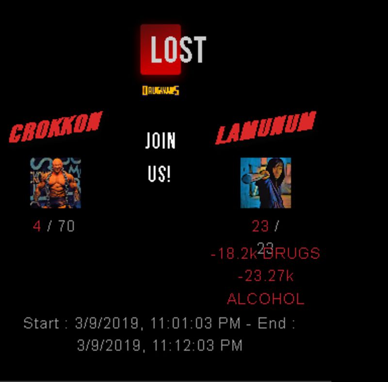 Check my latest fight ! crokkon vs lamunumlamunum (25)in #drugwars-fight • 7 years ago #gaming #fight #dw