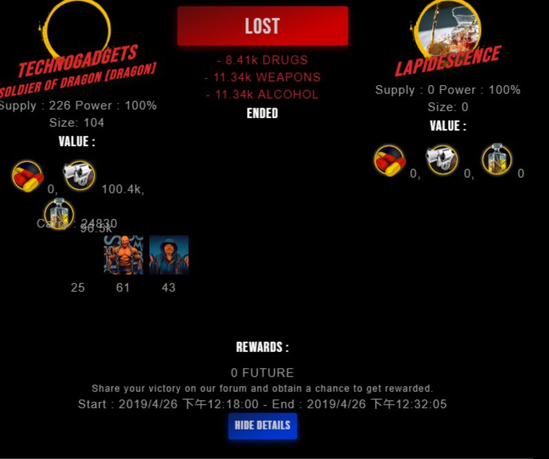 Check my latest fight ! technogadgets vs lapidescencelapidescence (29)in #drugwars-fight • 7 years ago #gaming #fight #dw