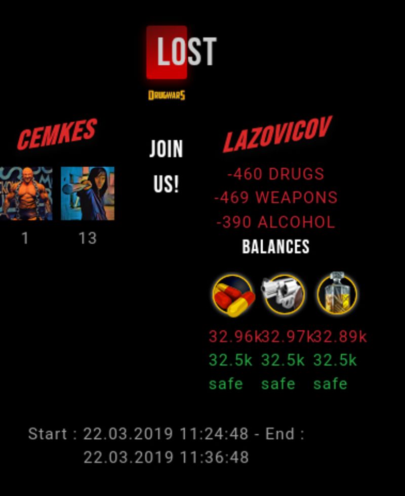 Check my latest fight ! cemkes vs lazovicovlazovicov (39)in #drugwars-fight • 7 years ago #gaming #fight #dw
