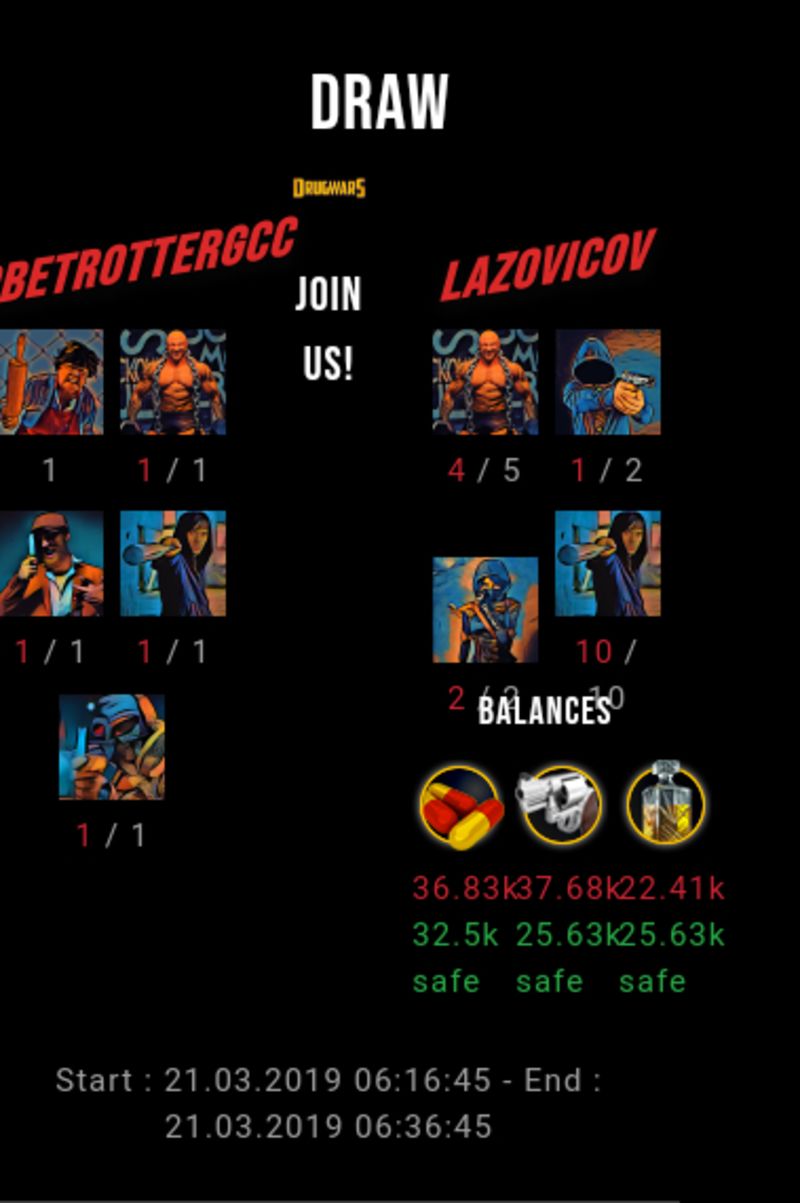Check my latest fight ! globetrottergcc vs lazovicovlazovicov (39)in #drugwars-fight • 7 years ago #gaming #fight #dw