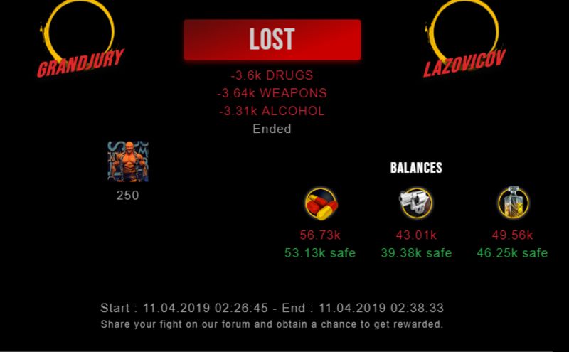Check my latest fight ! grandjury vs lazovicovlazovicov (39)in #drugwars-fight • 7 years ago #gaming #fight #dw