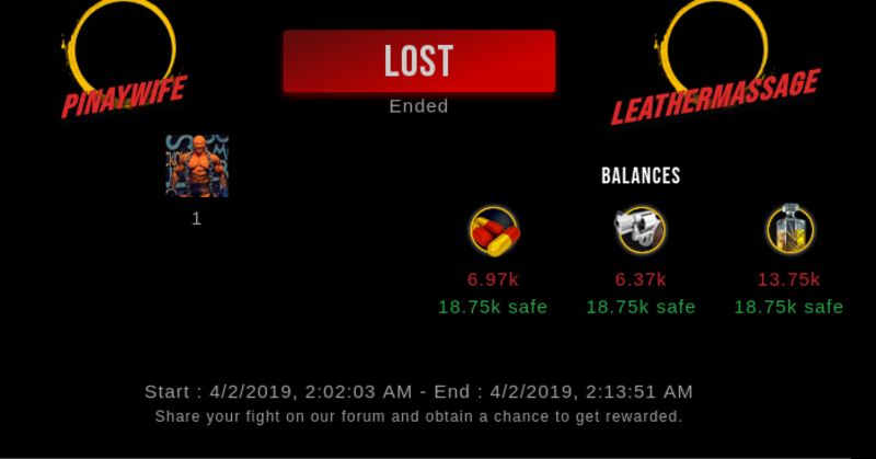 Check my latest fight ! pinaywife vs leathermassageleathermassage (27)in #drugwars-fight • 7 years ago #gaming #fight #dw