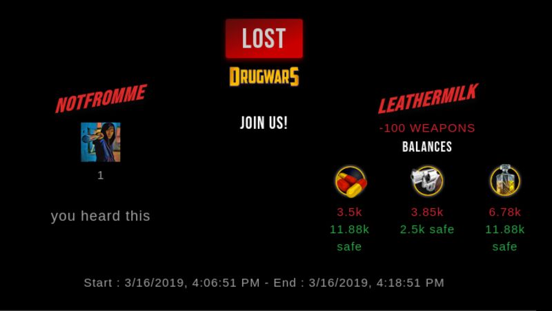 Check my latest fight ! notfromme vs leathermilkleathermilk (25)in #drugwars-fight • 7 years ago #gaming #fight #dw