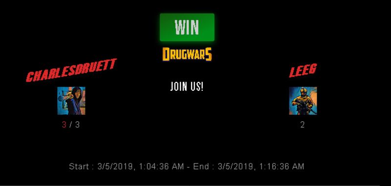 Check my latest fight ! charlesdruett vs leegleeg (31)in #drugwars-fight • 7 years ago #gaming #fight #dw