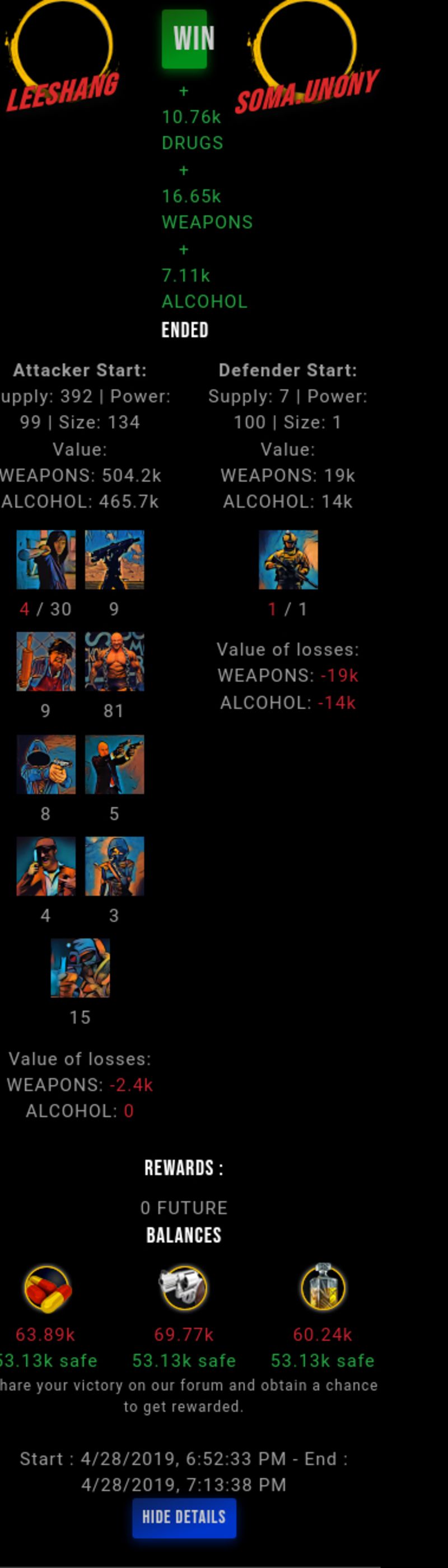Check my latest fight ! leeshang vs soma.unonyleeshang (57)in #drugwars-fight • 7 years ago #gaming #fight #dw