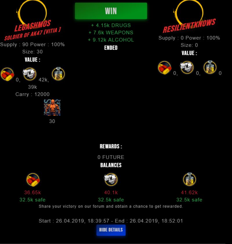 Check my latest fight ! legashmos vs resilientknowslegashmos (59)in #drugwars-fight • 7 years ago #gaming #fight #dw