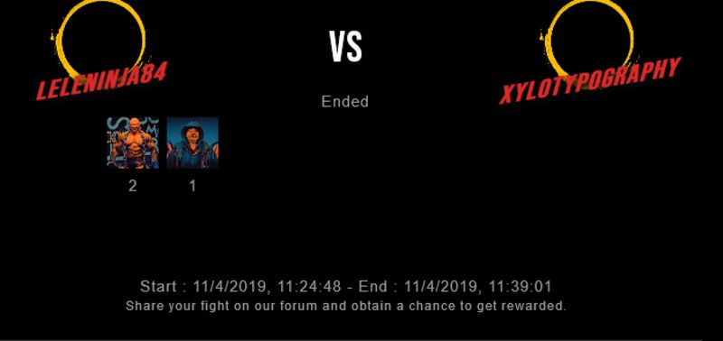Check my latest fight ! leleninja84 vs xylotypographyleleninja84 (40)in #drugwars-fight • 7 years ago #gaming #fight #dw
