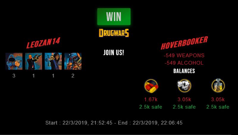 Check my latest fight ! leozan14 vs hoverbookerleozan14 (42)in #drugwars-fight • 7 years ago #gaming #fight #dw