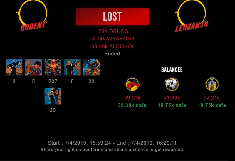 Check my latest fight ! rodent vs leozan14leozan14 (42)in #drugwars-fight • 7 years ago #gaming #fight #dw