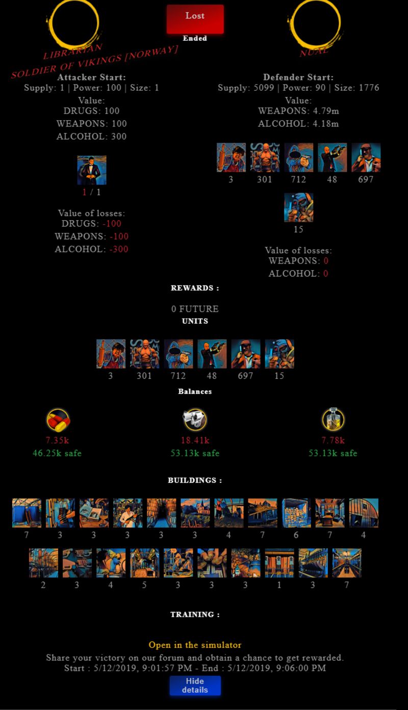 Check my latest fight ! librarian vs nuallibrarian (49)in #drugwars-fight • 7 years ago #gaming #fight #dw