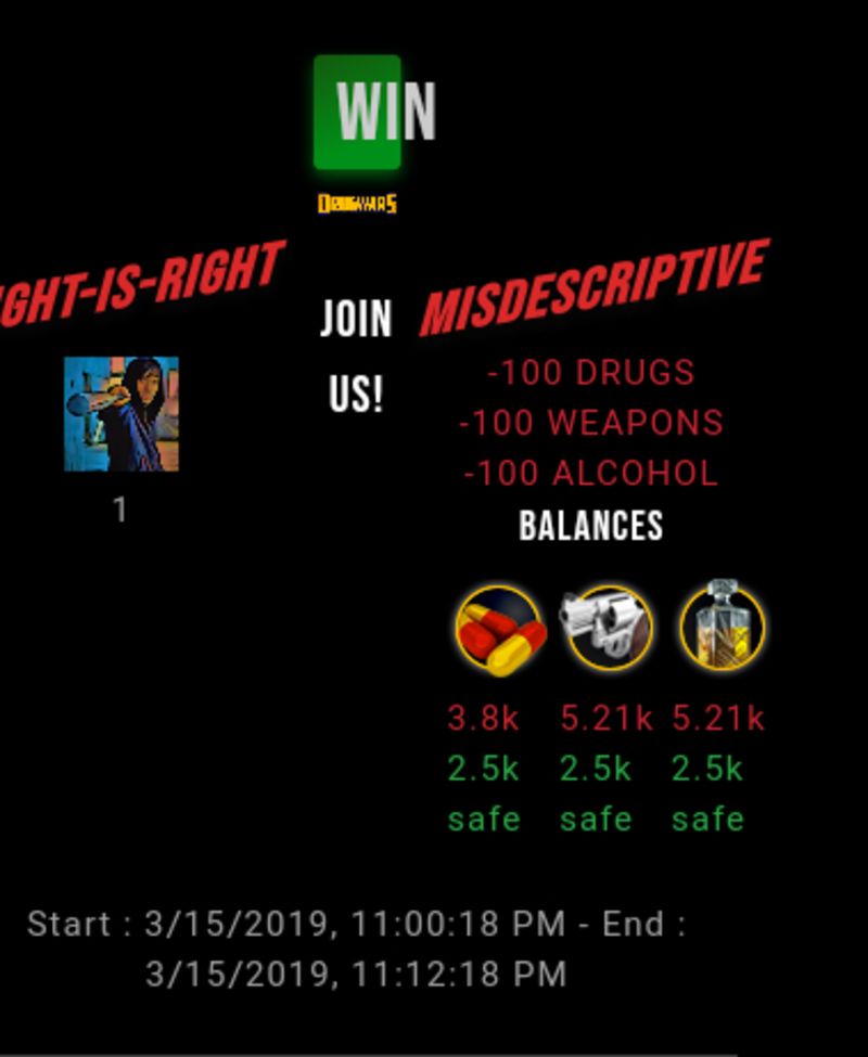 Check my latest fight ! light-is-right vs misdescriptivelight-is-right (41)in #drugwars-fight • 7 years ago #gaming #fight #dw