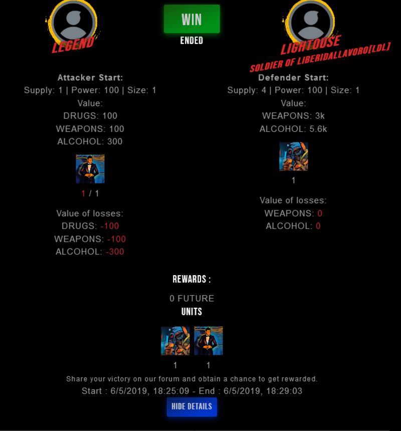 Check my latest fight ! legend vs lightouselightouse (42)in #drugwars-fight • 7 years ago #gaming #fight #dw