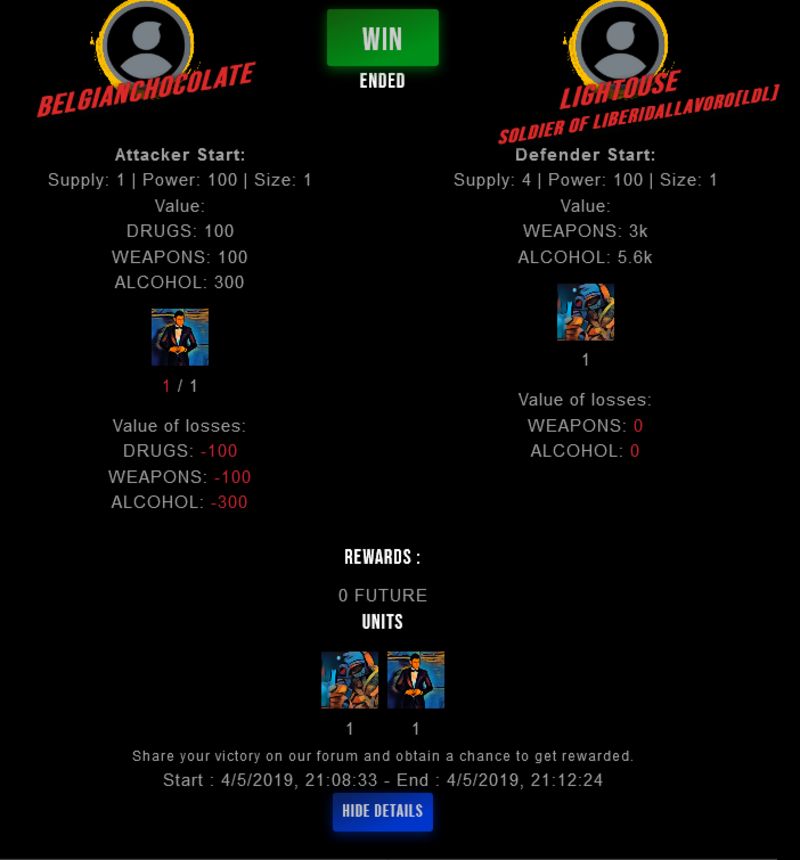 Check my latest fight ! belgianchocolate vs lightouselightouse (42)in #drugwars-fight • 7 years ago #gaming #fight #dw