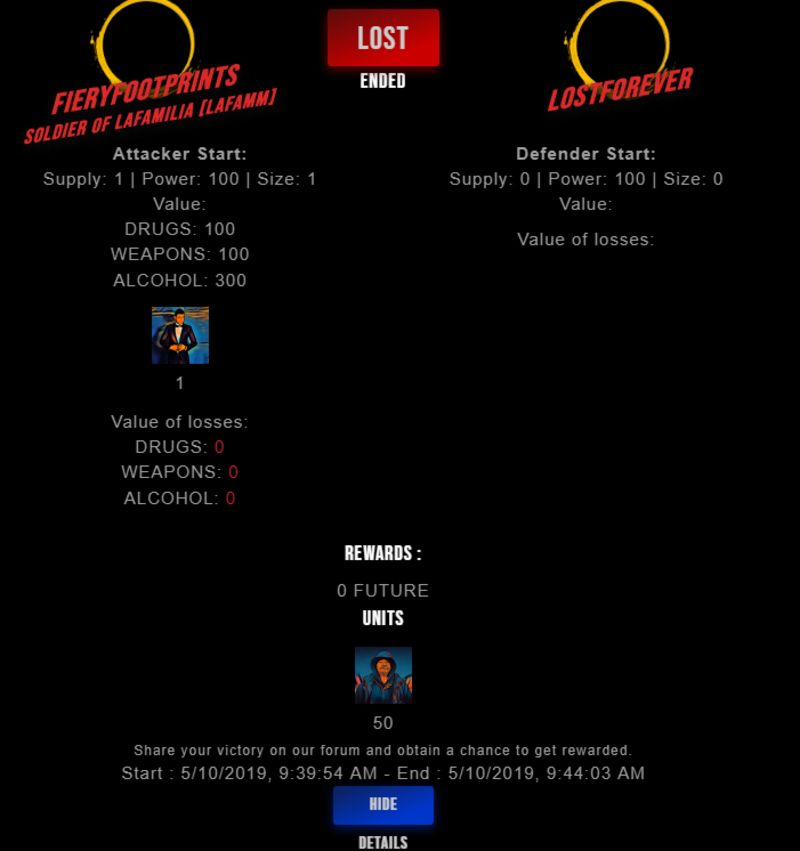 Check my latest fight ! fieryfootprints vs lostforeverlostforever (47)in #drugwars-fight • 7 years ago #gaming #fight #dw