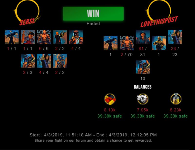 Check my latest fight ! sersl vs lovethispostlovethispost (50)in #drugwars-fight • 7 years ago #gaming #fight #dw