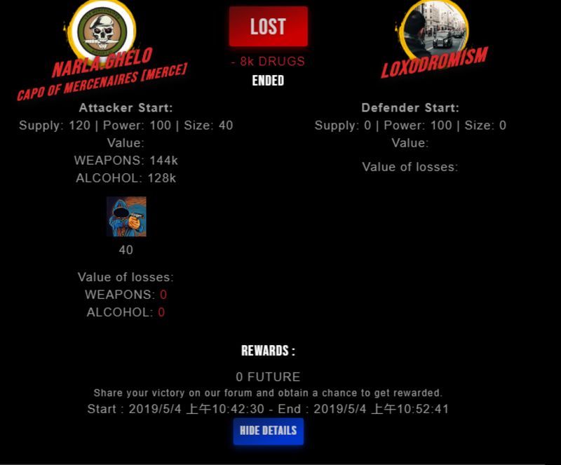 Check my latest fight ! narla.ghelo vs loxodromismloxodromism (27)in #drugwars-fight • 7 years ago #gaming #fight #dw
