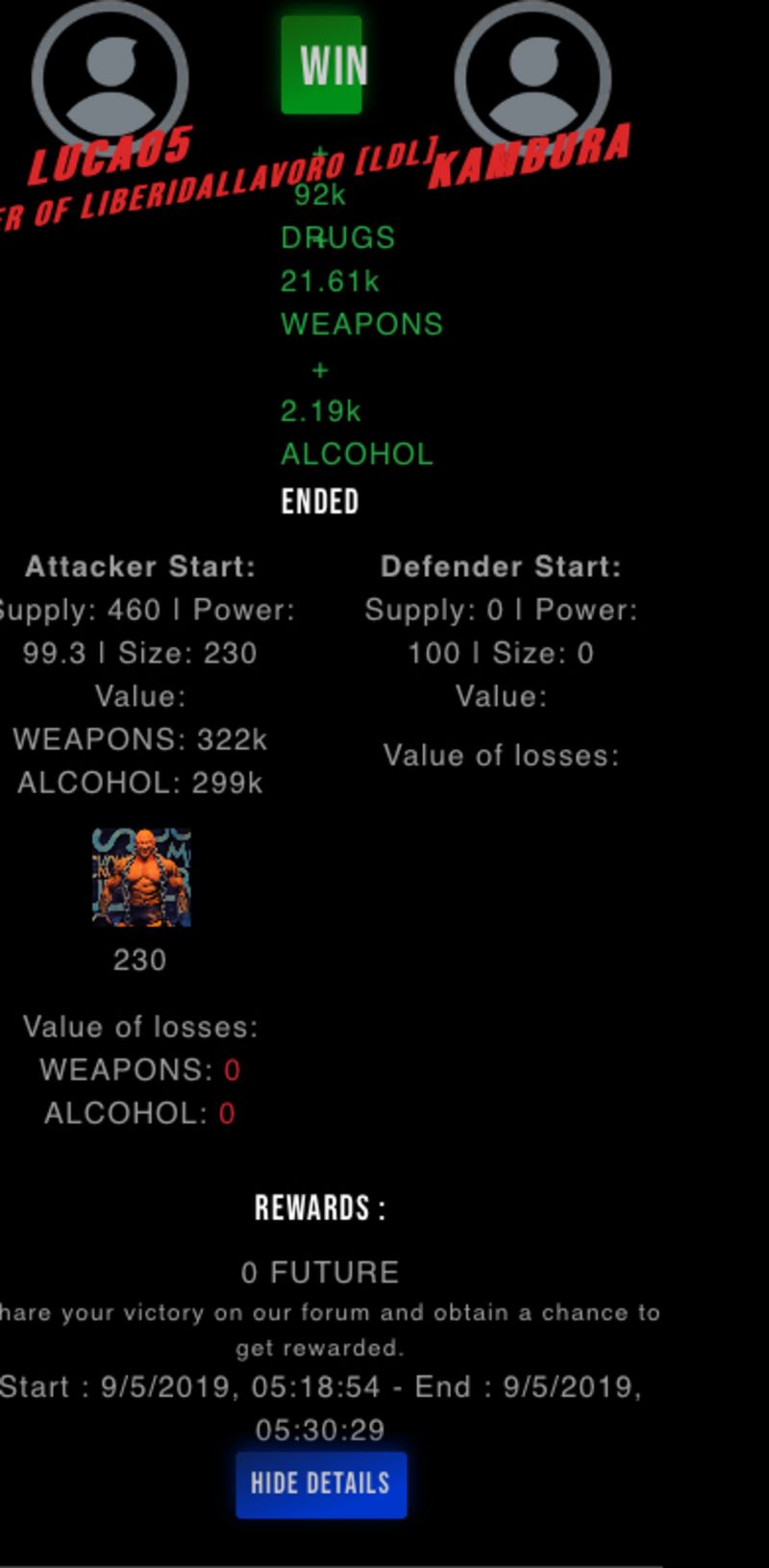 Check my latest fight ! luca05 vs kamburaluca05 (50)in #drugwars-fight • 7 years ago #gaming #fight #dw